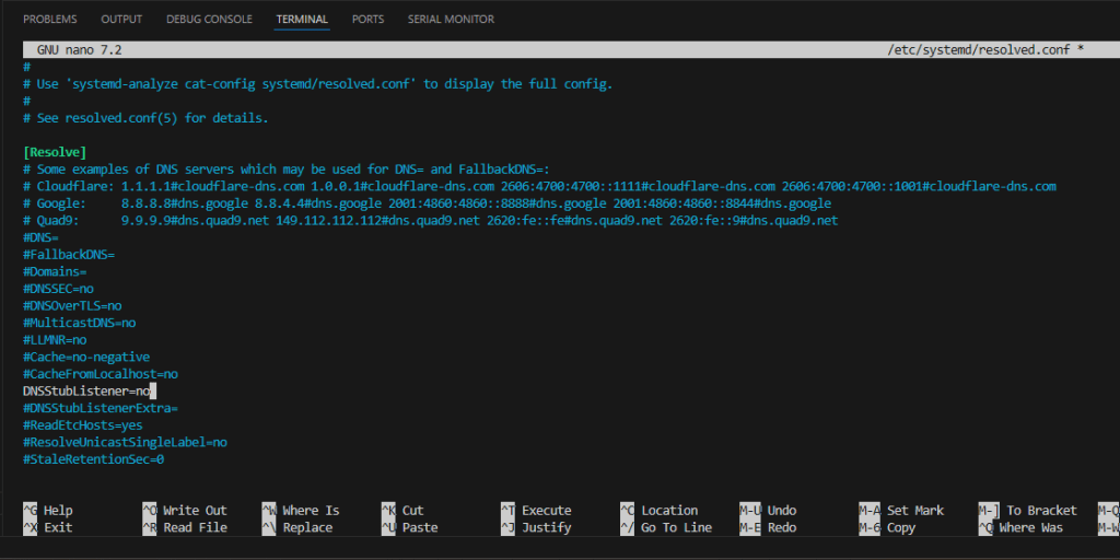 I followed those instructions exactly. Editing resolved.conf in nano I un-commented the DNSStubListener line and set it to “no”