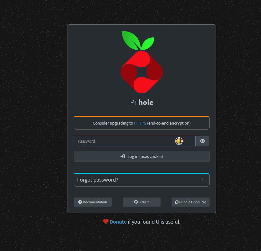 - Installed using these instructions: pi-hole/docker-pi-hole: The official Pi-hole Docker image from pi-hole.net